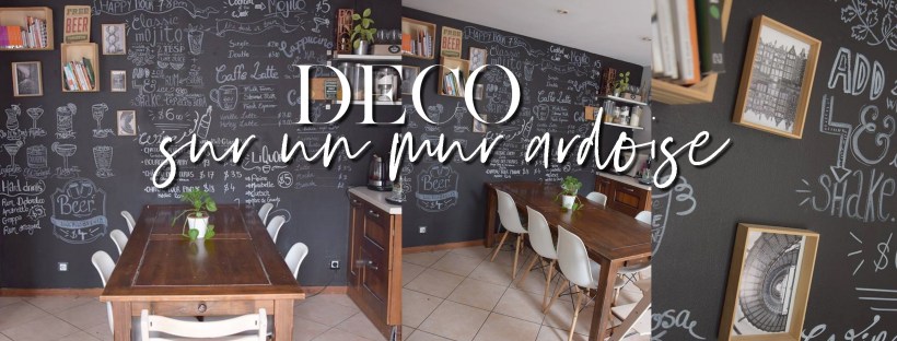 Nous avons donc peint le mur avec de la peinture ardoise, et j’ai dessiné au fur à mesure afin de recréer un effet « bar-restaurant ».(merci Pinterest pour les idées ^^)