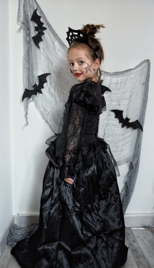 Elle a choisit cette année une jolie robe de sorcière, qui est livré avec un jupon pour un un super effet ! Vous pouvez retrouver cette robe ici .