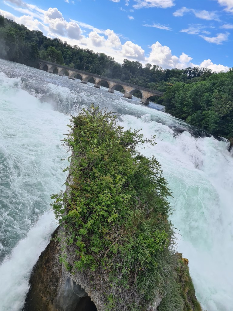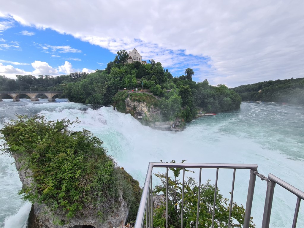 Un rocher émerge au centre des masses bouillonnantes, bravant les éléments depuis des millénaires. Un bateau emmène les visiteurs sur le Rhin, leur permettant d’accéder à cet îlot escarpé situé pratiquement au coeur des chutes et d’observer ce spectacle naturel de tout près sur des plate-formes construites en partie au-dessus des eaux bouillonnantes. Les châteaux de Wörth et de Laufen sont également accessibles en bateau. Les plus audacieux peuvent même louer des canoës.